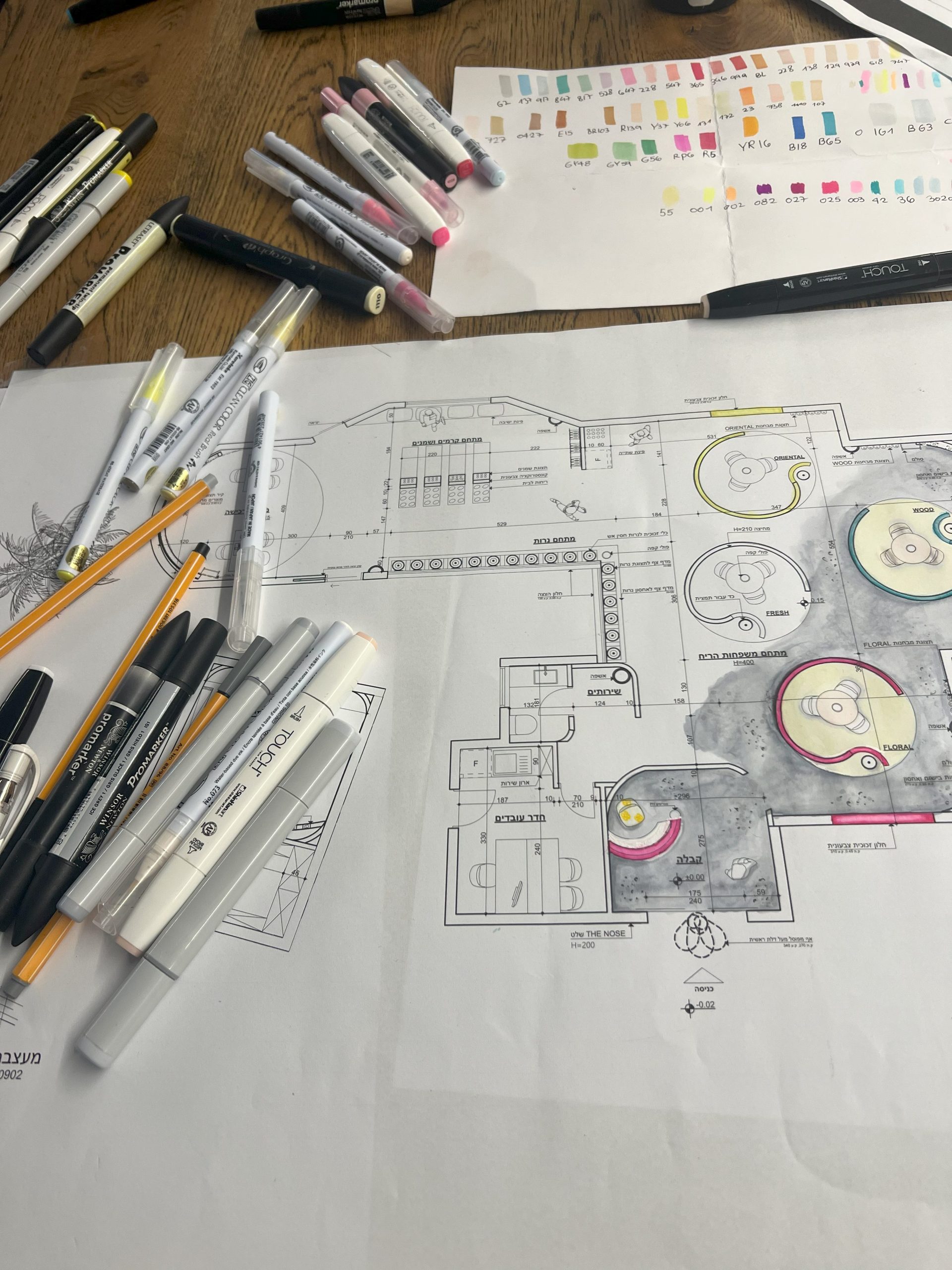 בניית שפה עיצובית אחידה לחלל – מצבעים וחומרים ועד לתחושת המותג בחלל עצמו.